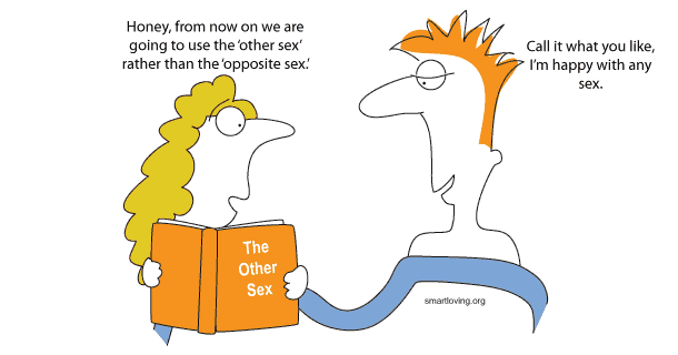 The issue is not just about accuracy, it’s about mentality. We have consciously chosen to use the term ‘other sex’ instead of ‘opposite sex’. It’s a term that can acknowledge our differences as men and women without implying inequality or opposition. It suggests complementarity rather than competitiveness. It invites us to appreciate and celebrate our differences rather than denigrate them. It fosters curiosity towards the mystery of gender difference rather than frustration, bewilderment or resigned tolerance.